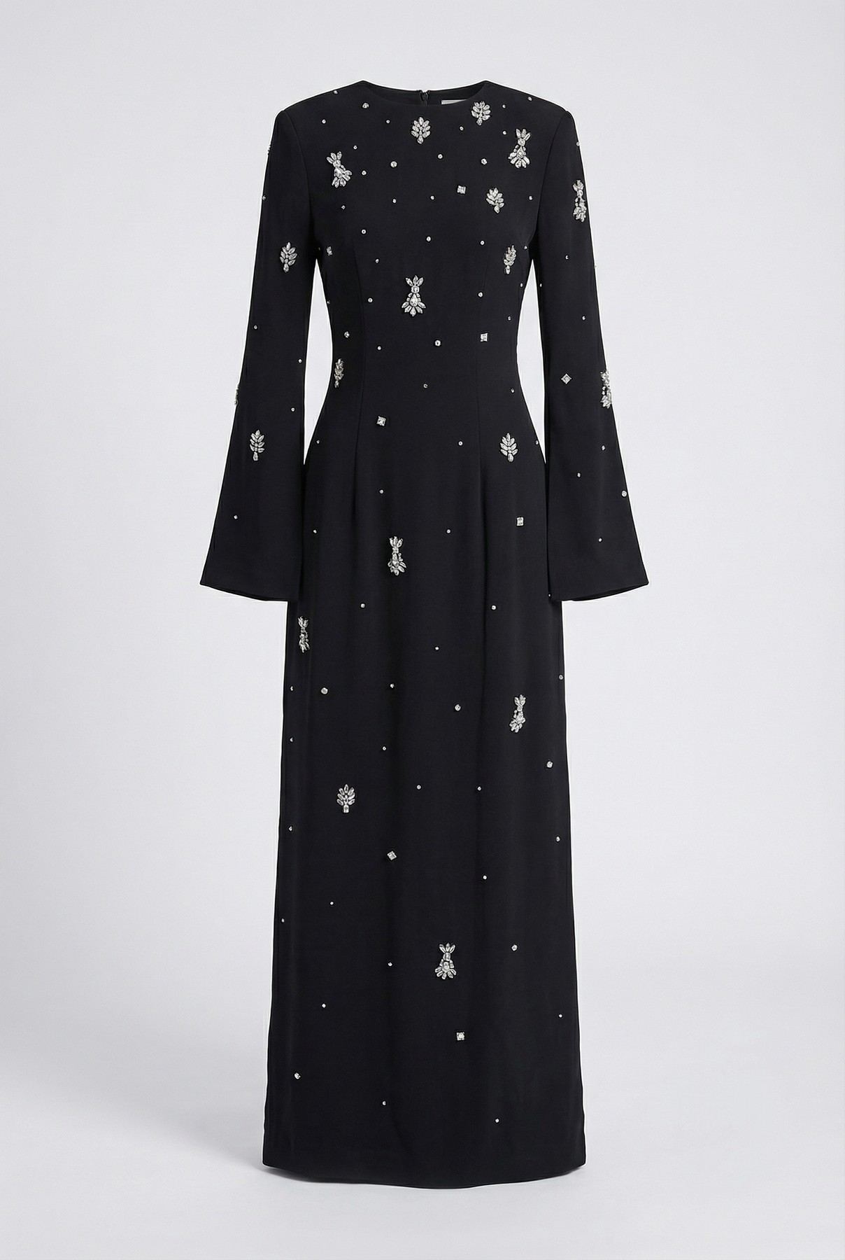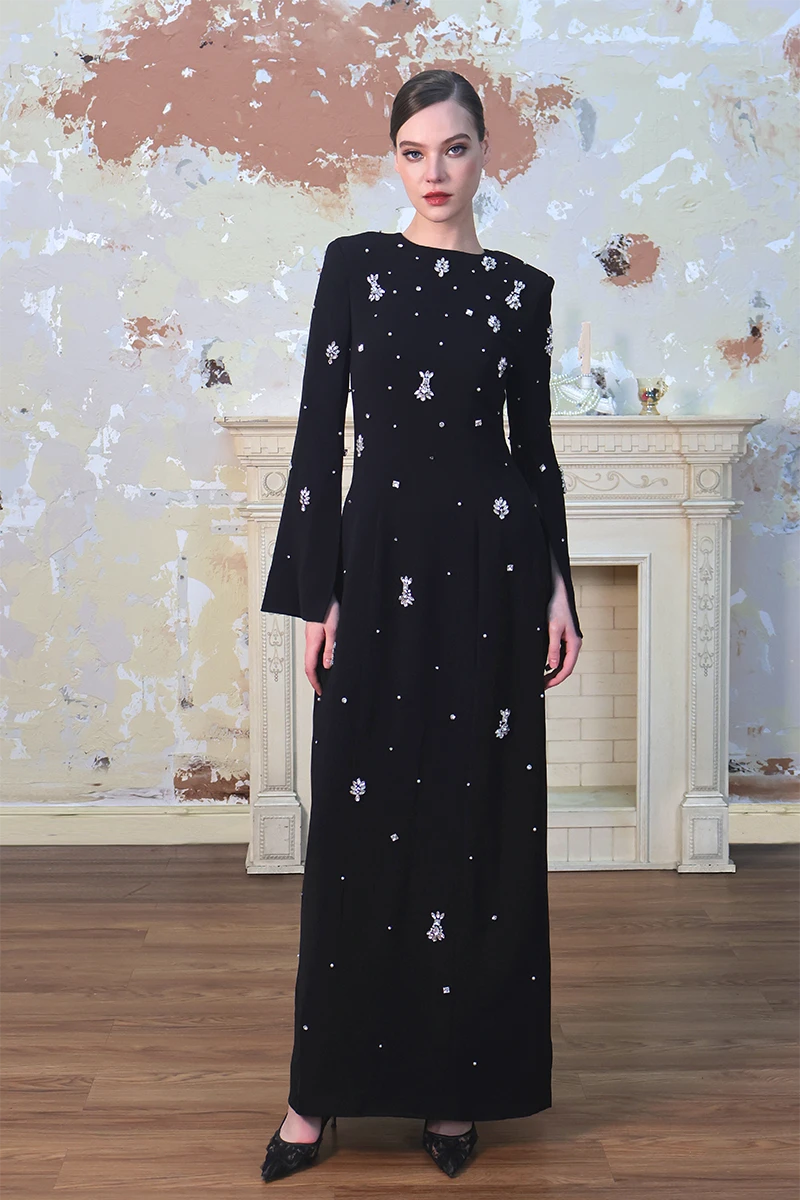 Elegant Diamond Embellished Black Maxi Evening Dress