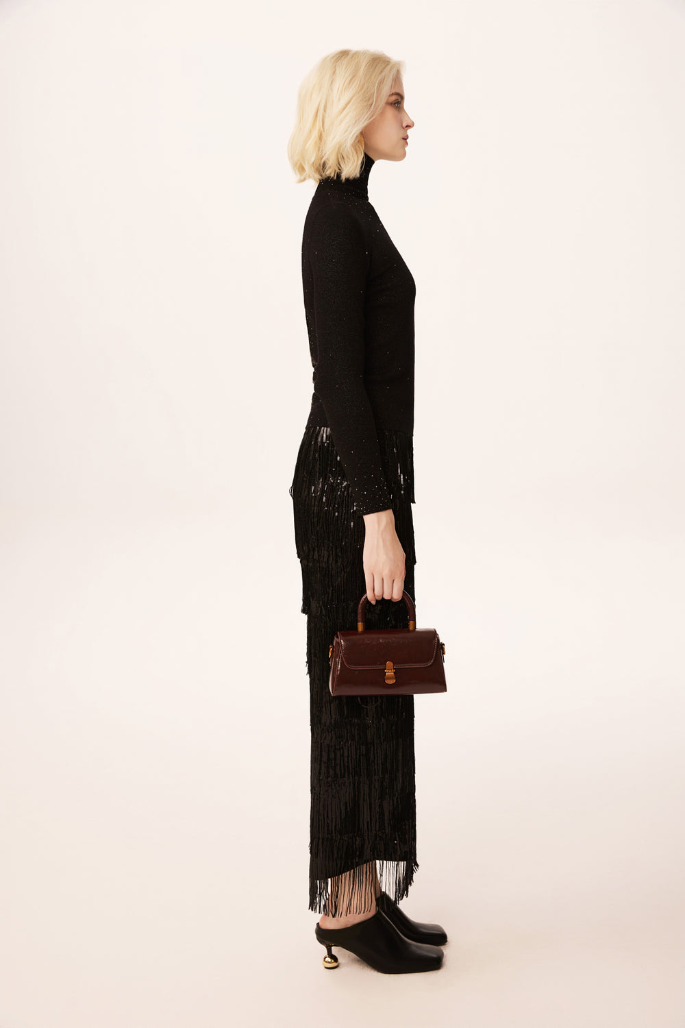 Crafted from soft fine wool, this slim-fit lightweight knit sweater features elegant lace panels and subtle bead embellishments. With a sophisticated high neck design, it blends delicate detailing and cozy warmth—perfect for polished layering or standalone wear.