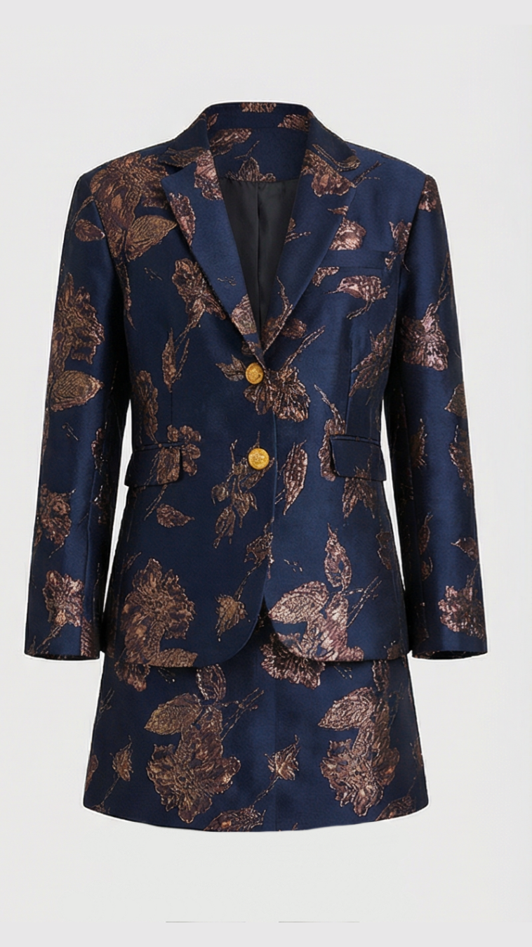 Women's Gold Jacquard Blazer