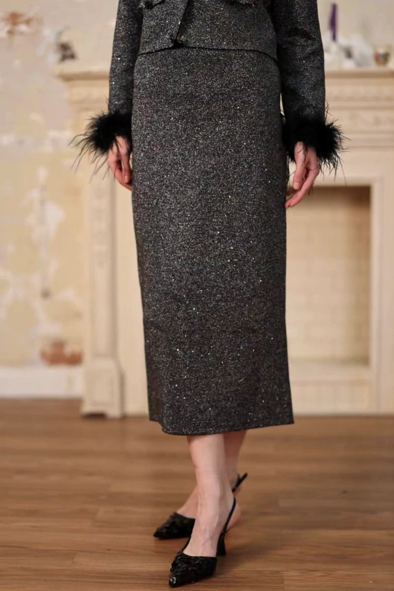 Luxury Diamond Decoration Vintage Hollow Out Pencil Skirt