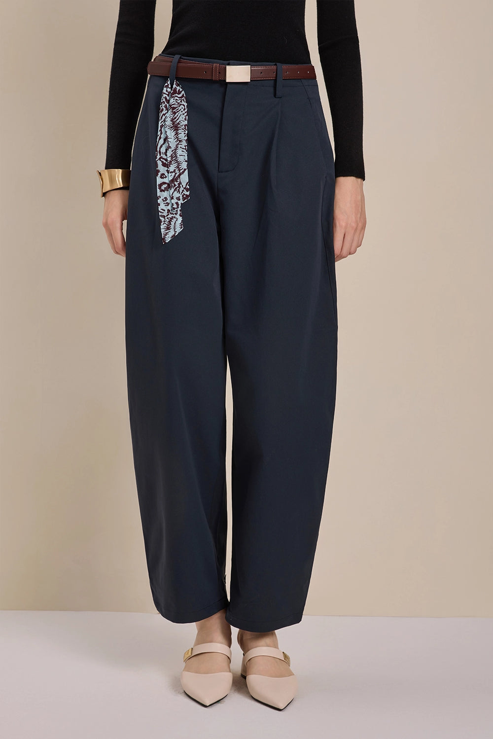 Solelegia Navy Relaxed- Fit Scythe-Leg Pants